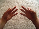 - Finger-Mudra: Gib Zeigefinger und Daumen jeder Hand zusammen und lege die Hände mit dem Handteller nach oben (Chin-Mudra) oder nach unten (Ghyana-Mudra) auf deine Knie.