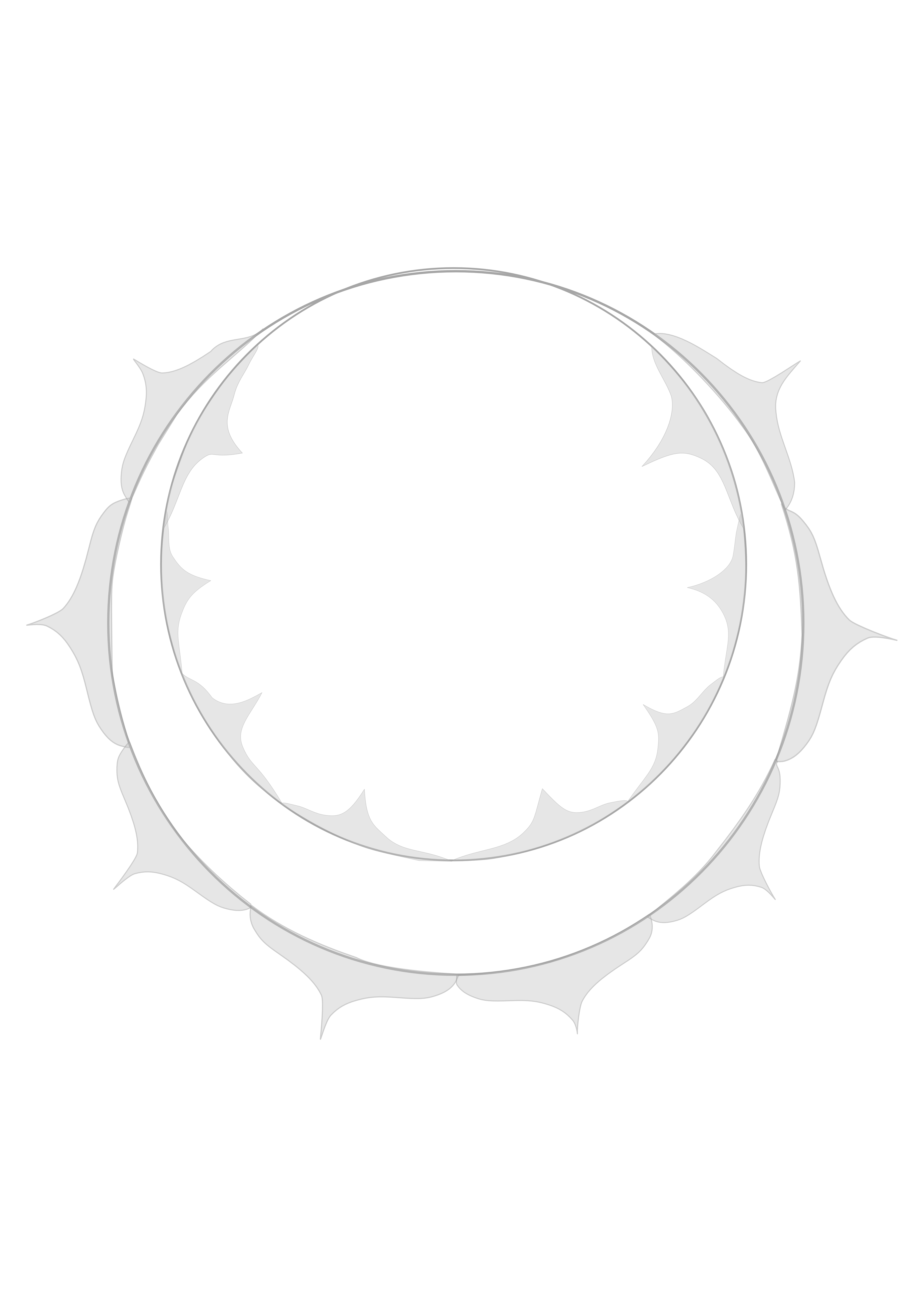 Swadhisthana – Sakralregion – Liegende, silberweiße Mondsichel – Element Wasser steht für die Zyklen des Lebens (Ebbe-Flut), die Fähigkeit zu fließen