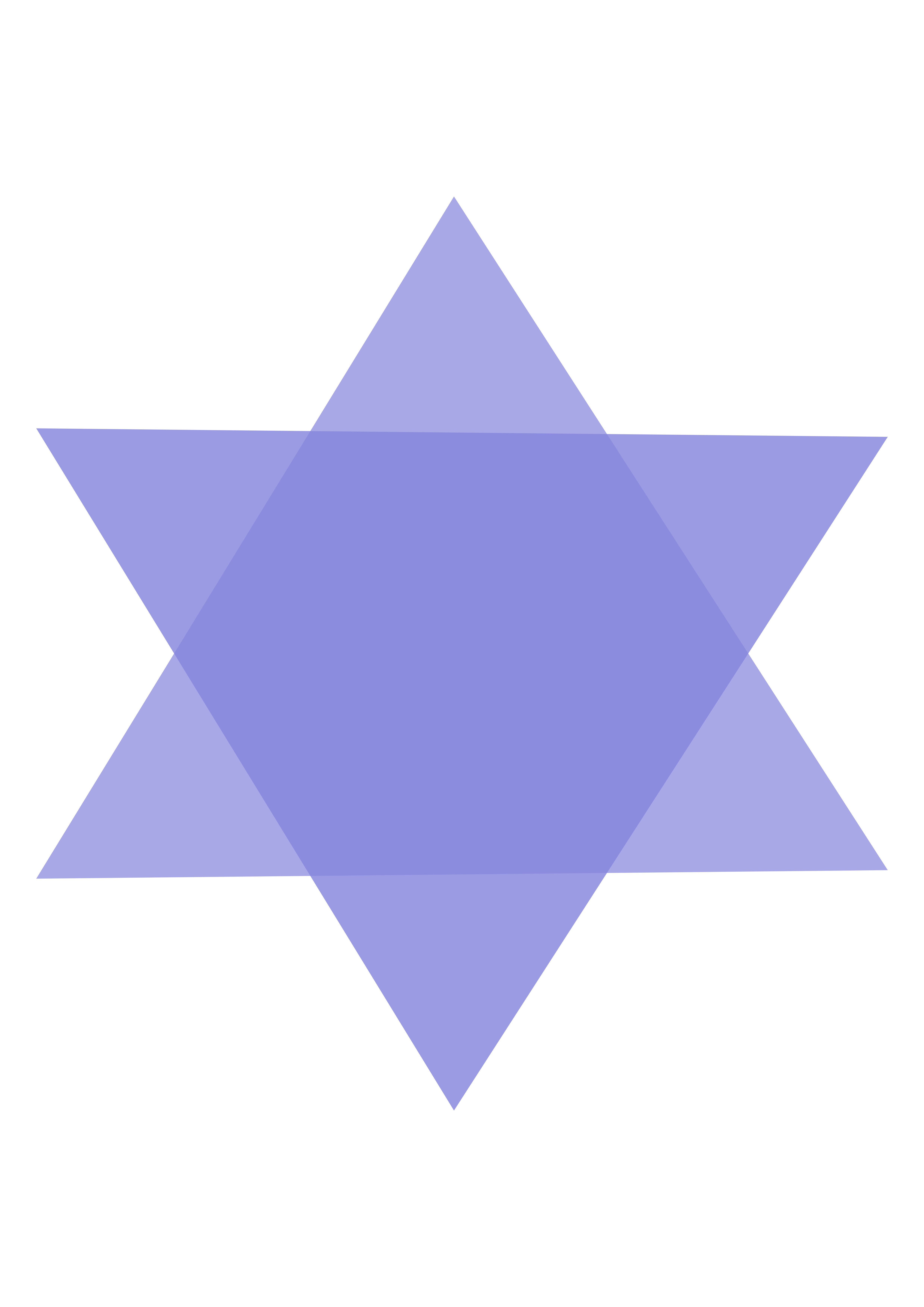Anahatha – Herzregion – Sechszackiger Stern im Blau des Sommerhimmels, bestehend aus zwei übereinander liegenden Dreiecken. Eines zeigt nach oben, das andere nach unten. – Element Luft steht für Liebe, Leichtigkeit, Beweglichkeit
